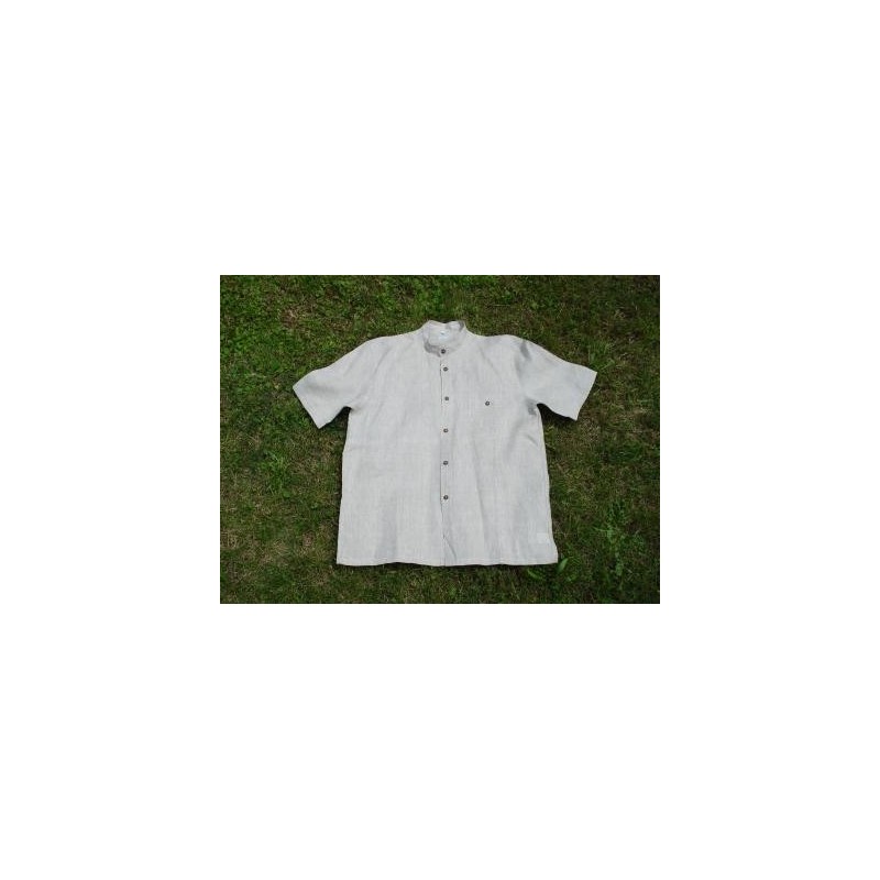 Camicia uomo in puro lino al 100%, non tinto, collo alla coreana e maniche lunghe.